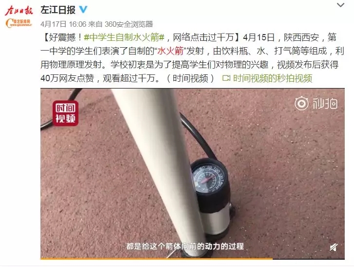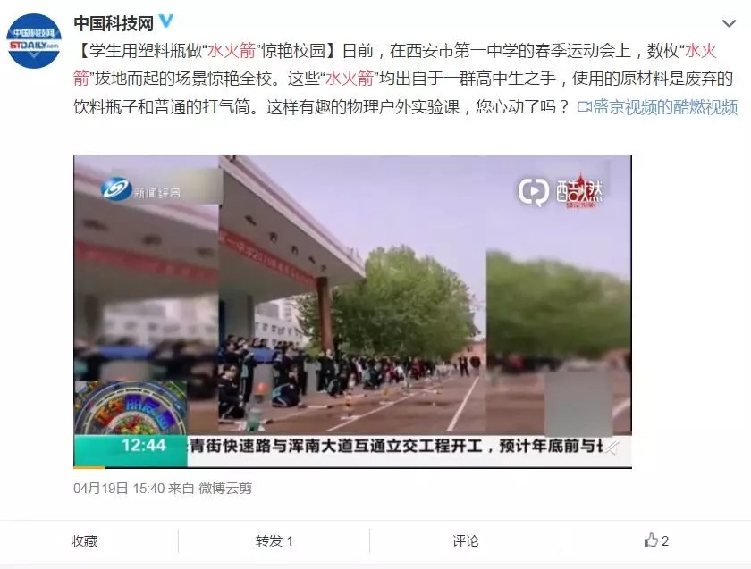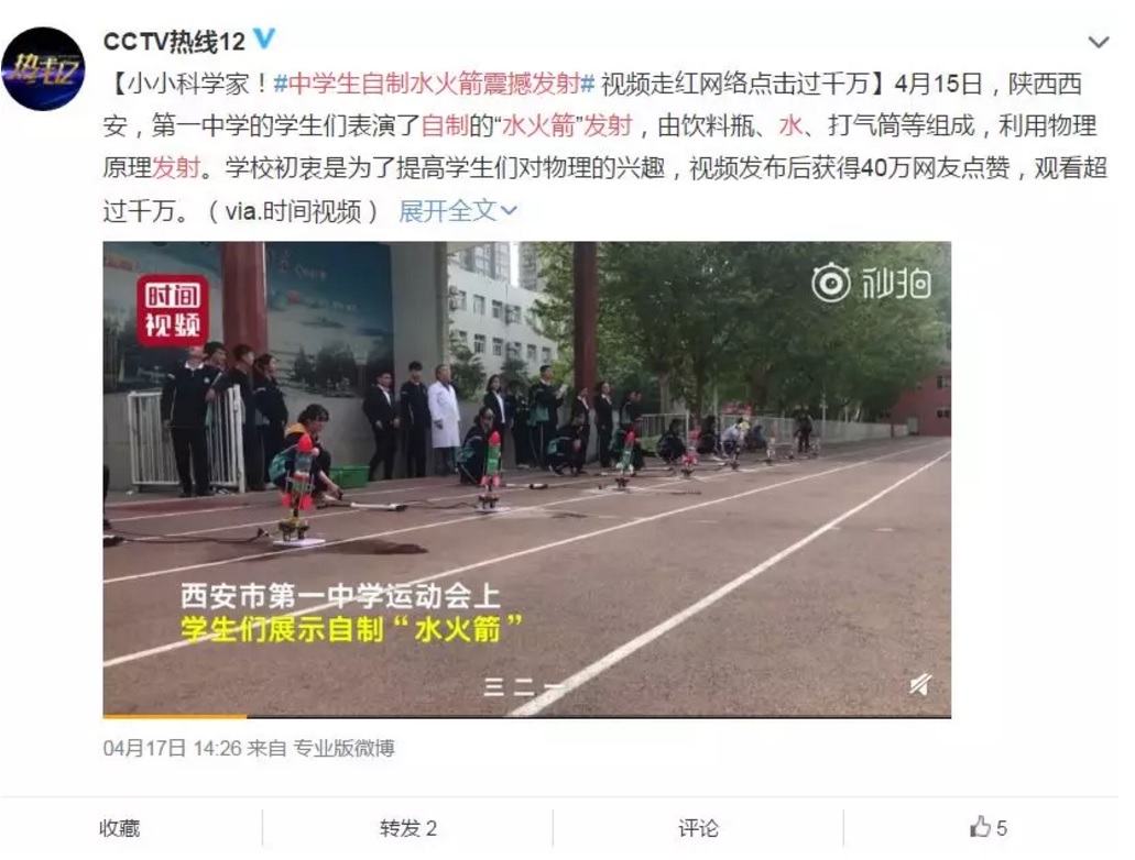 多家媒体对西安市第一中学“水火箭”进行了宣传报道