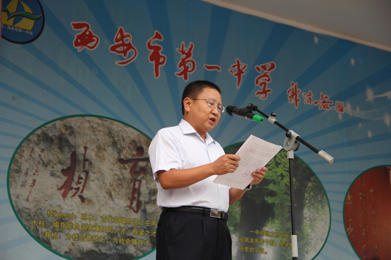 最后,西安市第一中学校长、西安益新中学董事长史建奎校长代表两校领导班子发表了题为“有责任 有目标 有举措 有进步”的节日致辞。在致辞中,他对受表彰教师表示热烈祝贺,对辛勤耕耘的全体教师表示衷心感谢。史校长回顾了学校过去一年所取得的成绩,他说,学校在过去的一年之所以能取得中高考成绩稳中有升,素质教育成果显著,办学水平整体提升,社会美誉度日渐隆起的好成绩,是上级正确指导,各方鼎力支持,学校家庭共负育人责任,老师学生共同努力的必然结果。他号召全体老师,在新的教育形势下,要牢牢把握“育人为本,德育为先,能力为重,全面发展”的育人方向,发扬敢为人先,勇争第一的优良传统,勇于负重,敢于担当,扎实工作,奋发有为,以新的精神风貌创造新的业绩。