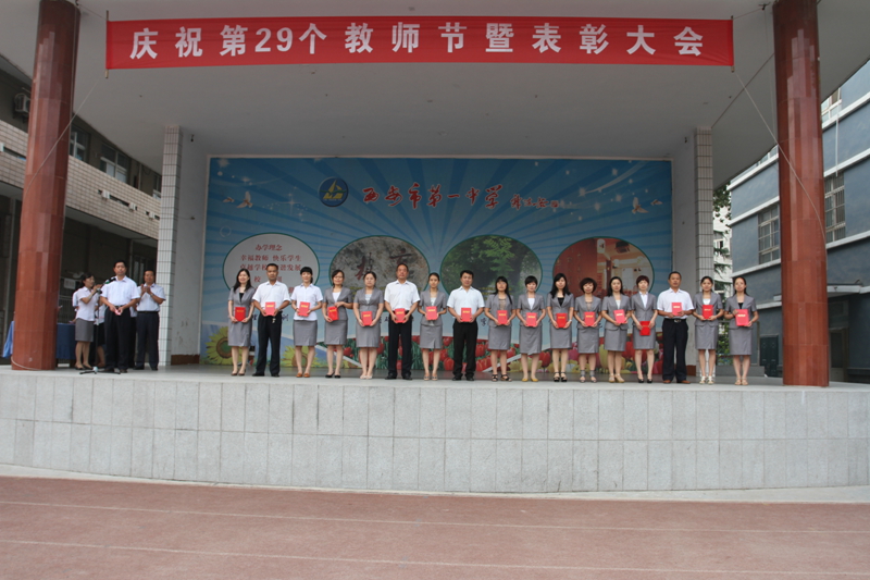 秋风送爽,丹桂飘香。9月9日,在我国第29个教师节到来之际,西安市第一中学、西安益新中学利用早操集会时间在运动场召开了一次务实简朴而又热烈隆重的“庆祝第29个教师节暨表彰大会”,全体教师互祝节日快乐并接受来自同学们的祝福,学校表彰一年来在教育教学、管理服务工作中涌现出来的优秀教师、先进教育工作者、优秀班主任。庆祝大会由西安市第一中学党总支李瑞民书记主持。