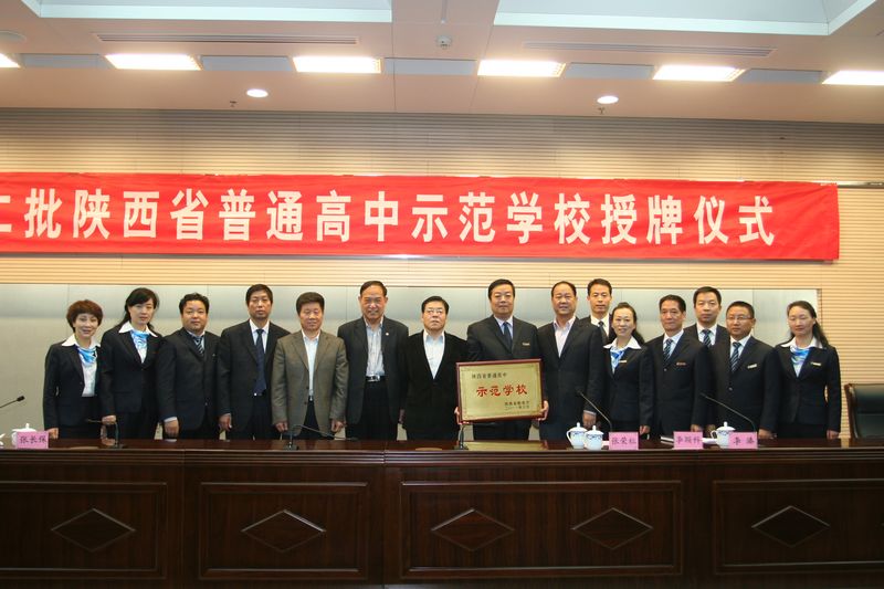 2011年10月24日,西安市第二批省级普通高中示范学校授牌仪式在西安市行政中心2号楼第4会议室隆重举行。陕西省教育厅副巡视员张长保,陕西省教育厅基教二处处长张荣祖,西安市教育局党委书记、局长李颖科,西安市教育局副局长黄新南、西安市教育局基教二处处长张瑞等领导出席了会议。