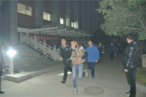 在演练进行中,全体师生高度重视,严肃认真,老师责任到人,组织到人,同学疏散服从命令,紧张有序,线路清晰,集合迅速。在短短5分钟内,全部按照预定的疏散路线,紧急而有序地从公寓撤离到操场指定地带。